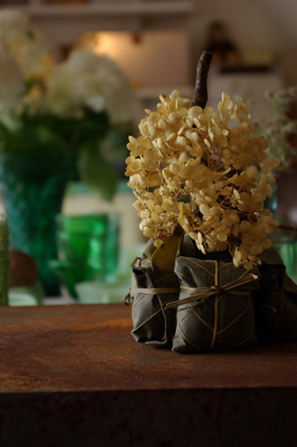 『ほうば巻』にデコされたアナベルも御近所さんからと